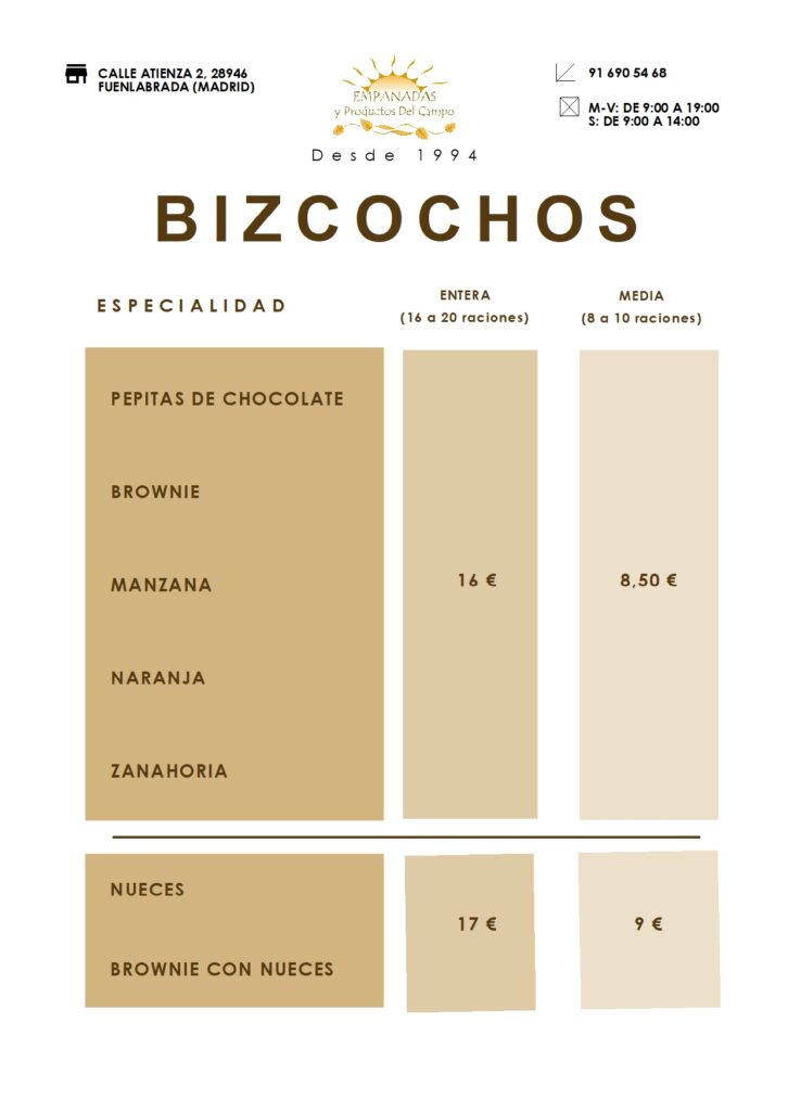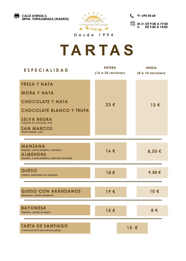 Empanadas, tartas y bizcochos en Fuenlabrada